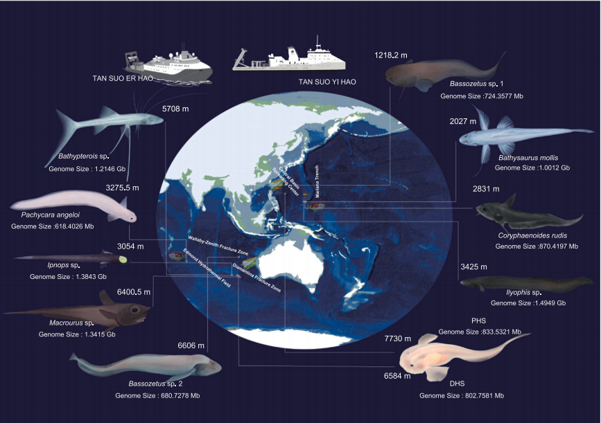 近期,中国科研实验室水生生物研究所、中国科研实验室深海科学与工程研究所何舜平团队在深渊鱼类适应性领域取得新进展。研究构建了环太平洋深渊鱼类基因组资源库,系统且全面揭示了脊椎动物突破高压生存禁区的适应性重塑和演化轨迹。研究还显示人类活动已经对深渊环境造成了污染。研究成果以“Evolution and genetic adaptation of fishes to the deep sea (鱼类对深海的进化和遗传适应)”为题,3月6日在线发表于《细胞》(Cell)。